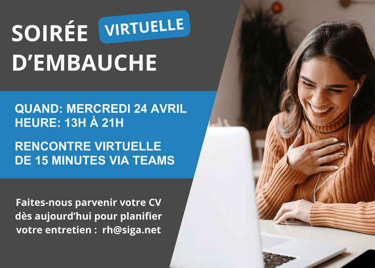 🚀 Rejoignez-nous pour une soirée d'embauche virtuelle exclusive ! C'est votre chance de plonger dans le monde de découvrir de passionnantes opportunités de carrière.